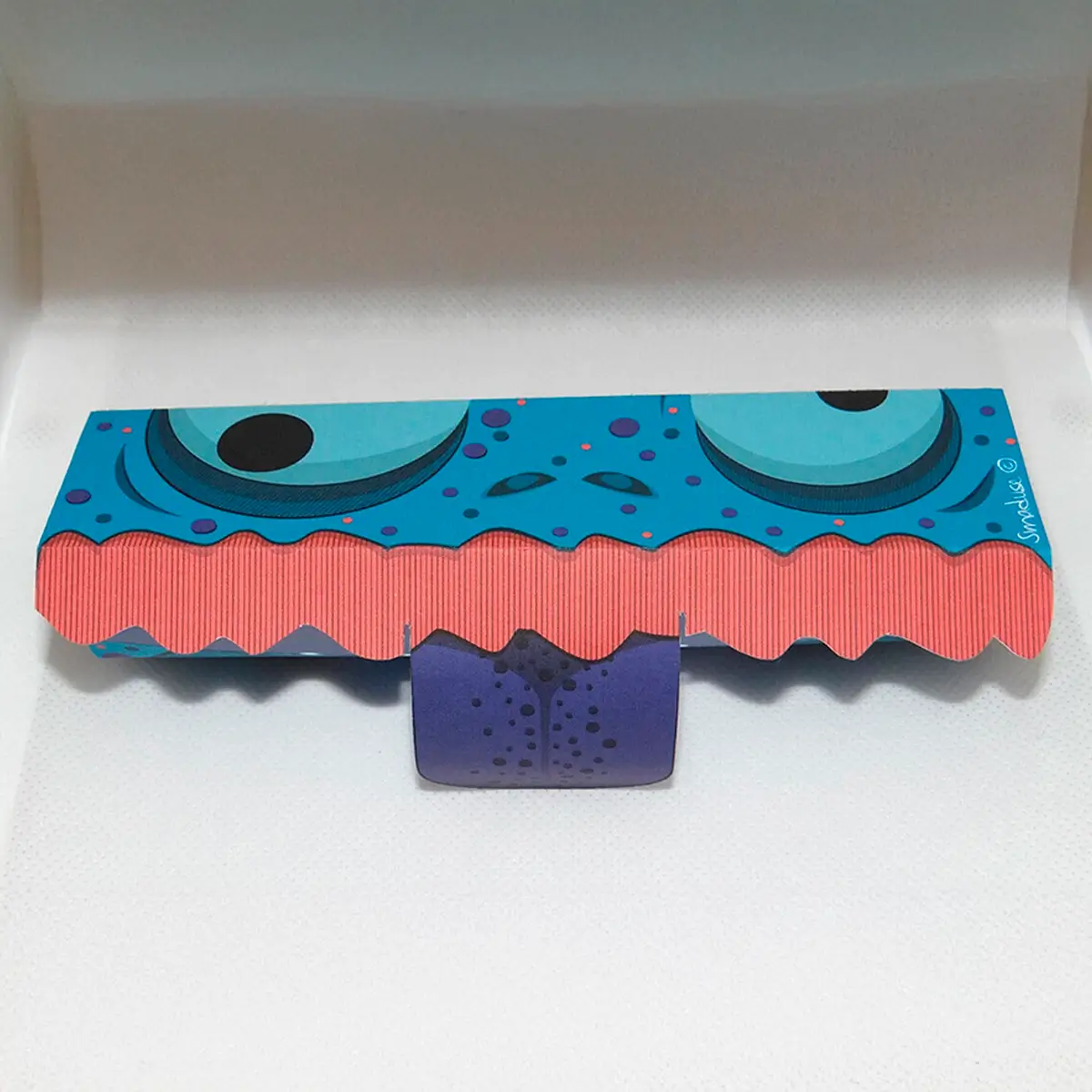 Es otra forma de dar dulces donde la lengua larga no es solo decoración, sino la solapa que cierra el empaque. Un personaje que guarda con cuidado el secreto que decidas esconder en su interior. ¡Cuidado con él!