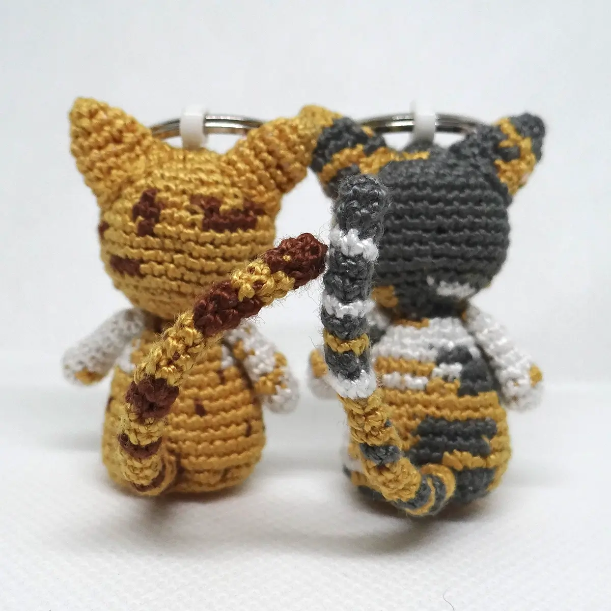 Cada miniatura mide aproximadamente 5 cm de alto, tejida con precisión y terminada con ojos de mostacilla.