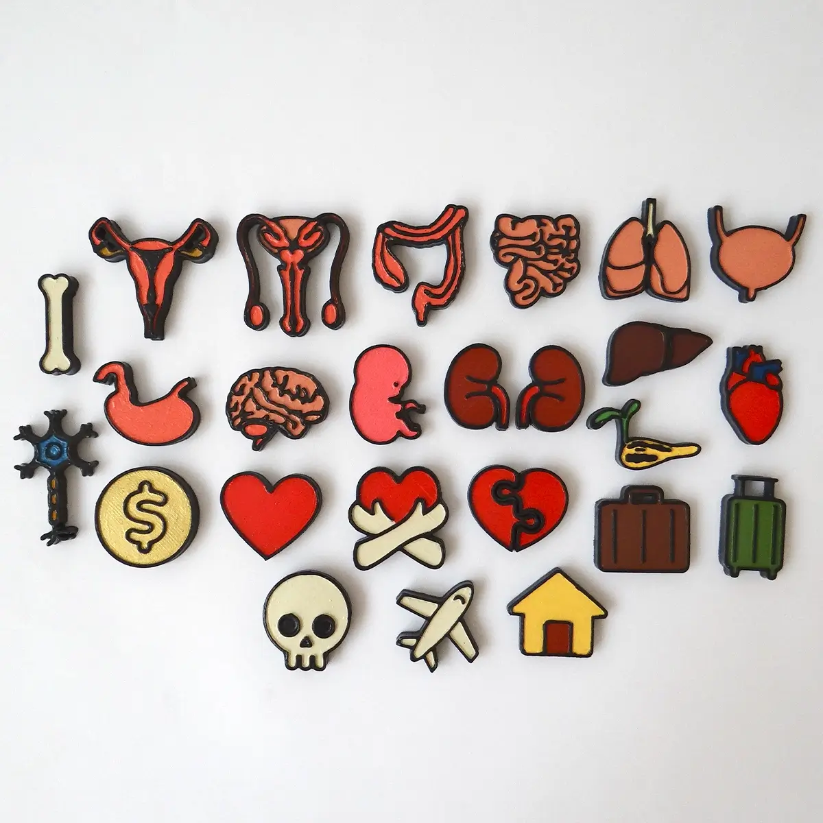 • 24 Fichas Adicionales: un conjunto versátil que incluye órganos del cuerpo, figuras de representaciones de profesiones abstractas.