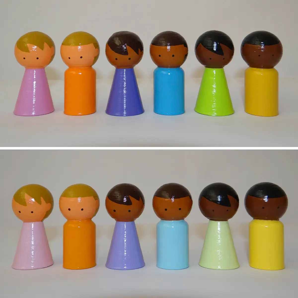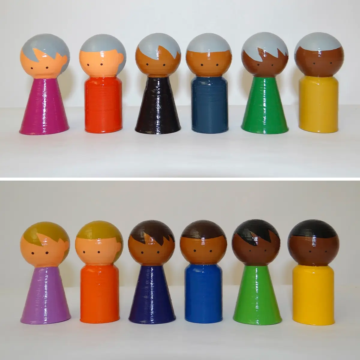Este kit de para Constelaciones Familiares, destaca por su equilibrio entre amplitud y ligereza. Fabricadas en PLA (bioplástico biodegradable), las piezas son más livianas que las de porcelanicrón, facilitando su transporte sin perder resistencia. Cada figura está pintada a mano con acrílico y protegida con barniz mate o brillante.