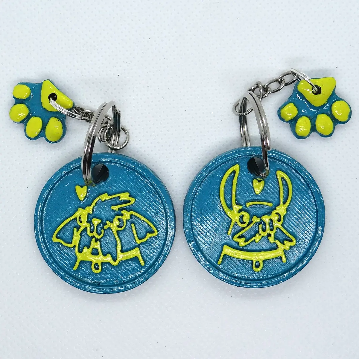Estos llaveros nacieron como un regalo especial para el equipo de profesionales de la Veterinaria Salva, en agradecimiento por su labor. Son piezas que integran la tecnología de impresión 3D (realizadas en máquina P3) con el alma del trabajo manual.